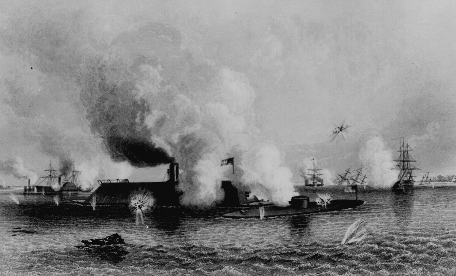 44. Battle between the C.S.S. Virginia and the U.S.S. Monitor, Hampton Roads, Va., March 9, 1862. Engraved in 1863 by J. Davies from a drawing by C. Parsons. 64-CC-63.