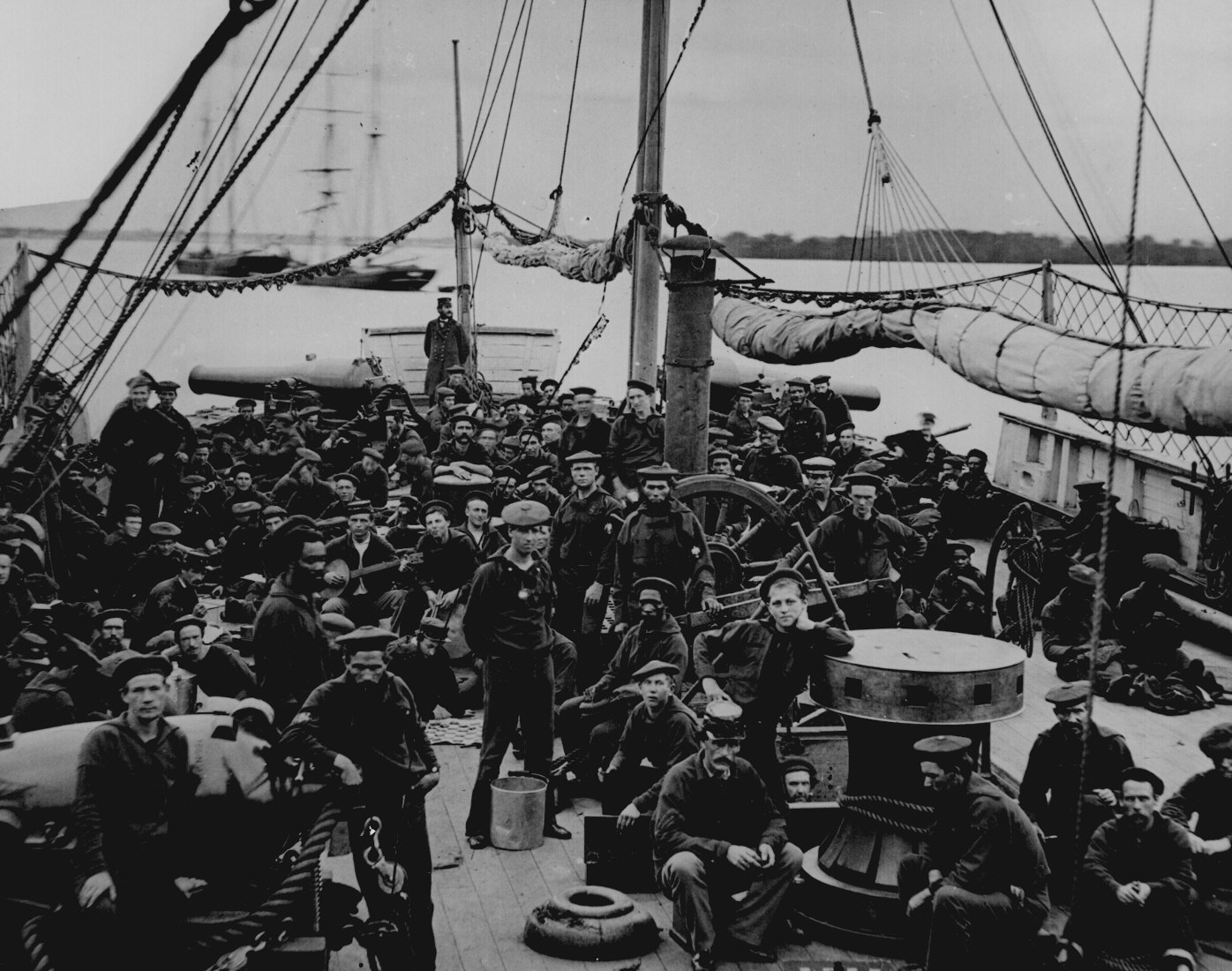 52. Sailors and marines on the deck of the U.S. gunboat Mendota, 1864. 111-B-129.