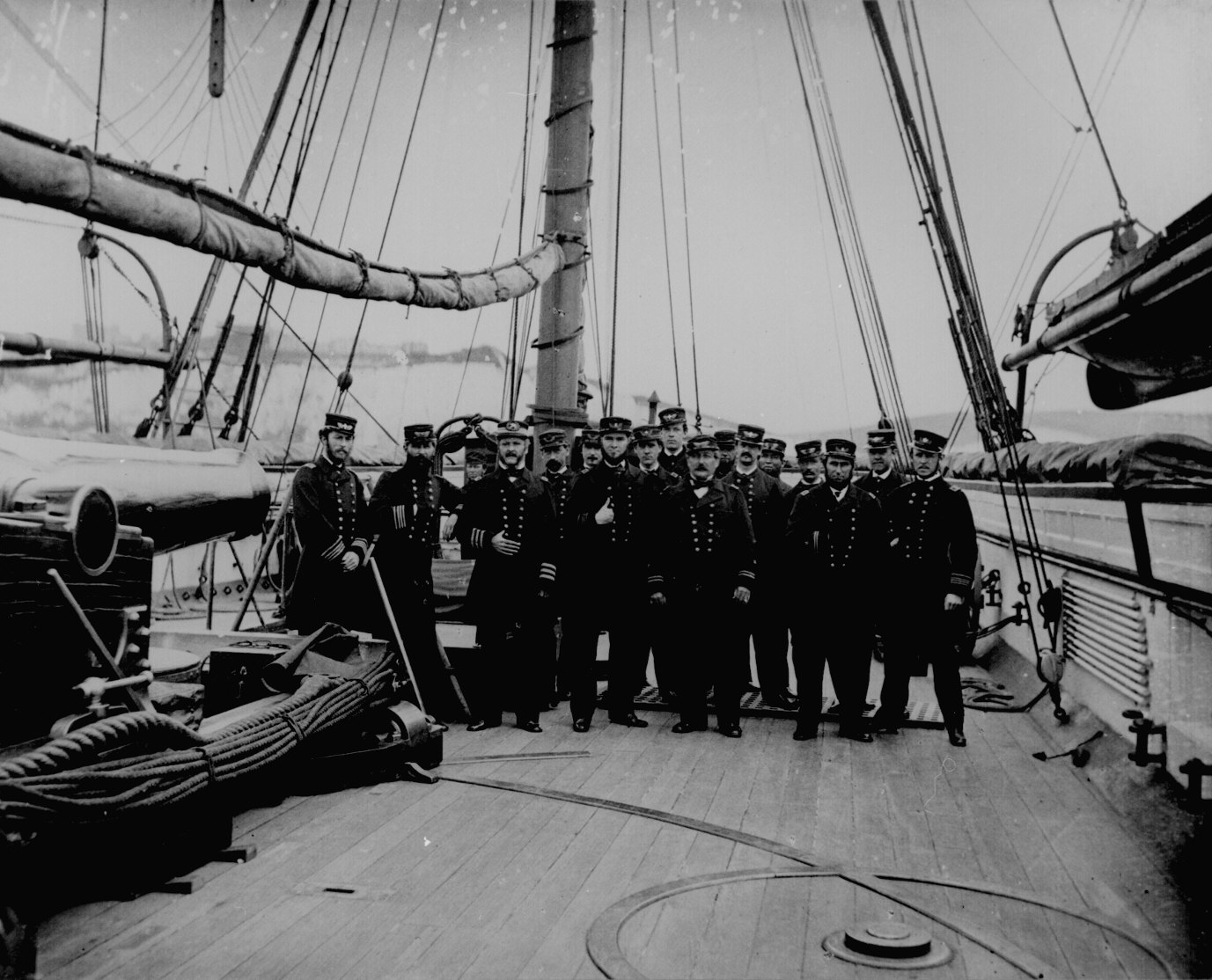 54. Capt. John A. Winslow (3d from left) and officers on board the U.S.S. Kearsarge after sinking the C.S.S. Alabama, 1864. 111-B-448.