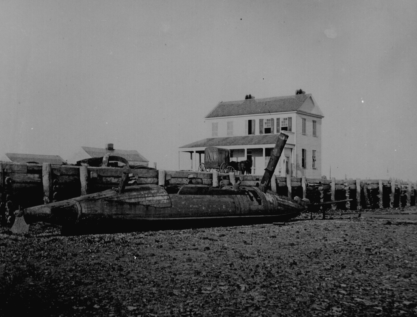 56. Confederate torpedo boat David aground at Charleston, S.C., 1865. Photographed by Selmar Rush Seibert. 165-C-751.
