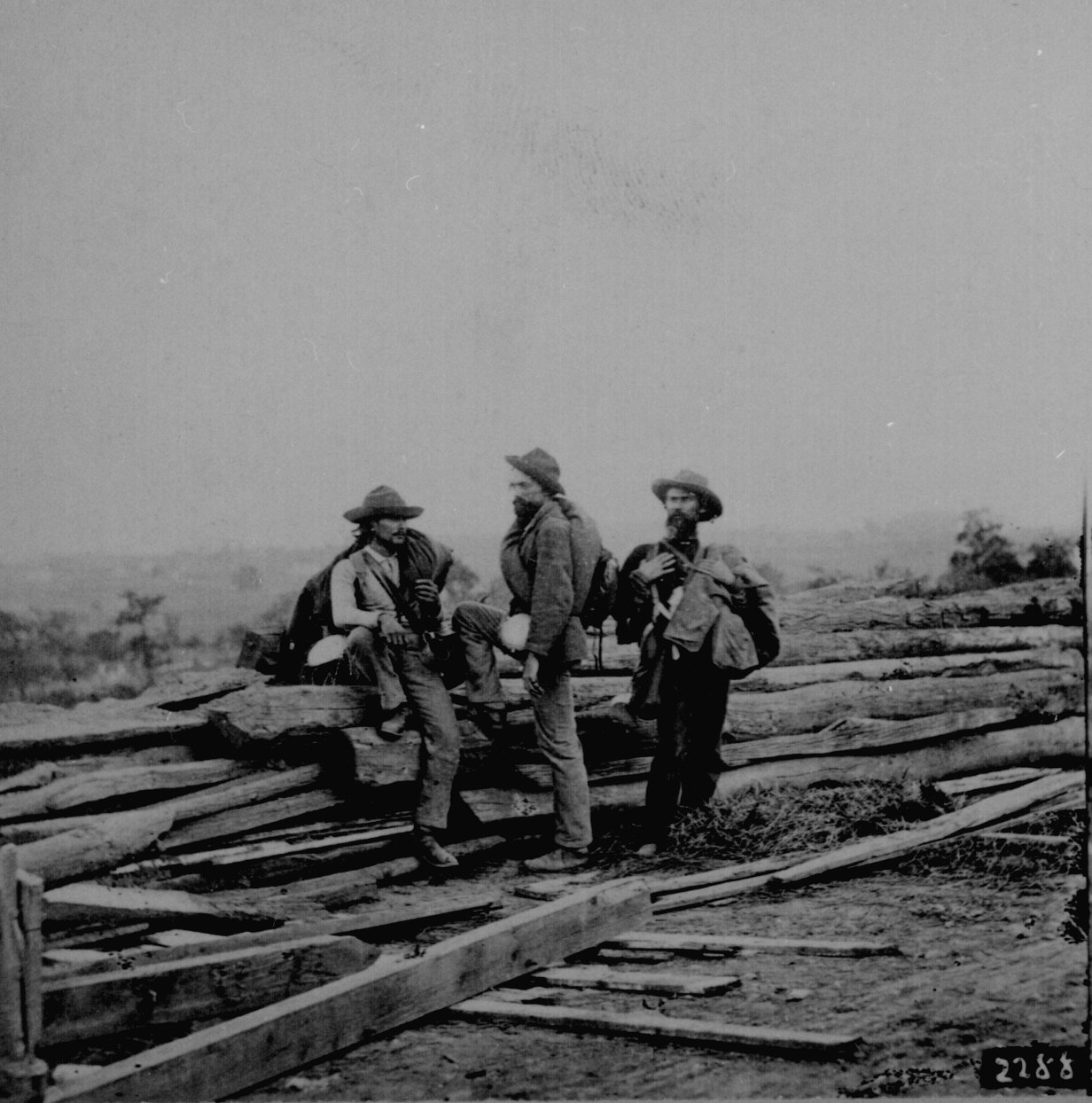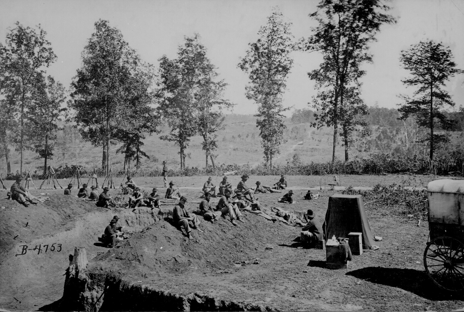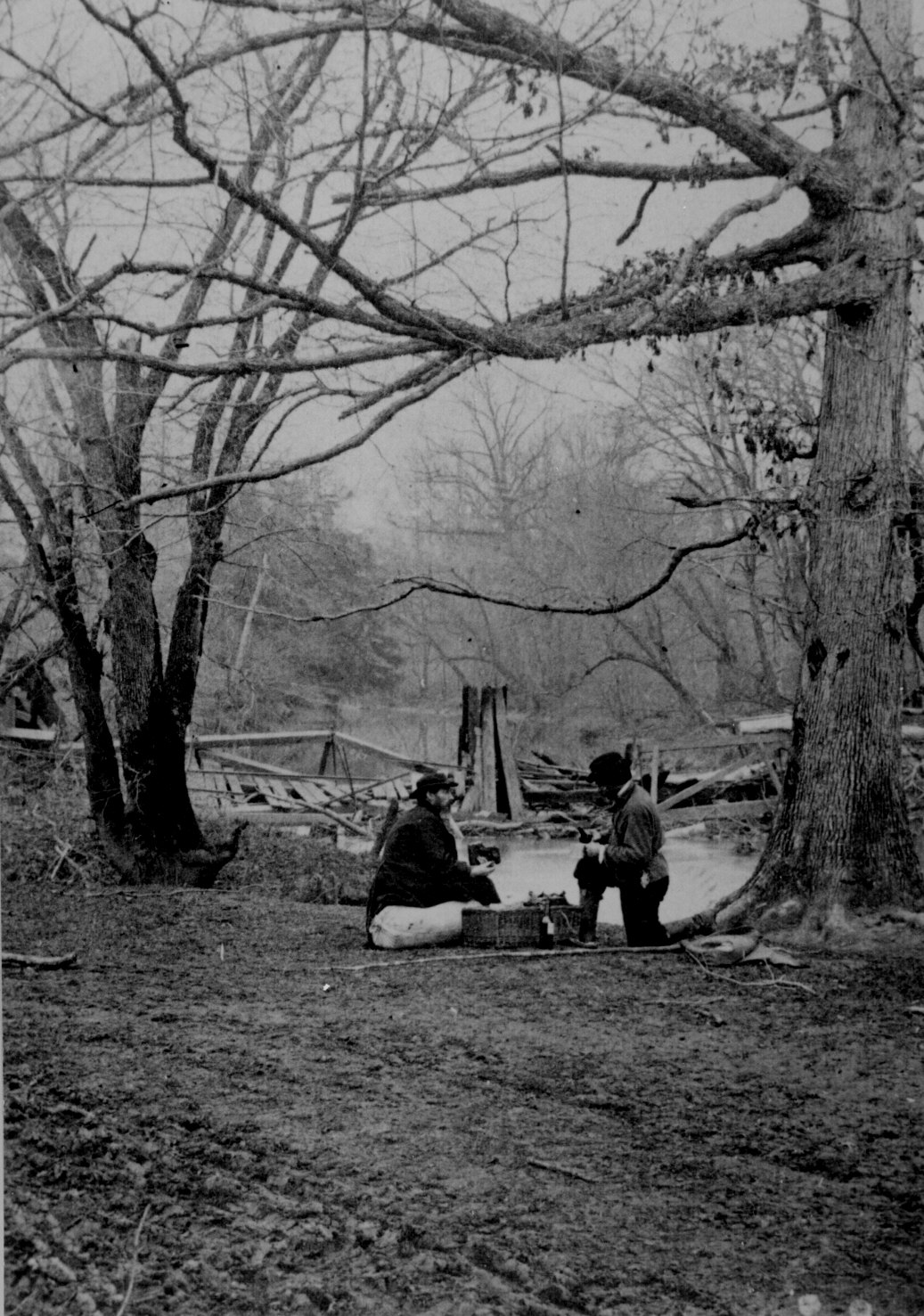 65. Two photographers having lunch in the Bull Run area before the second battle, 1862. 90-CM-42.