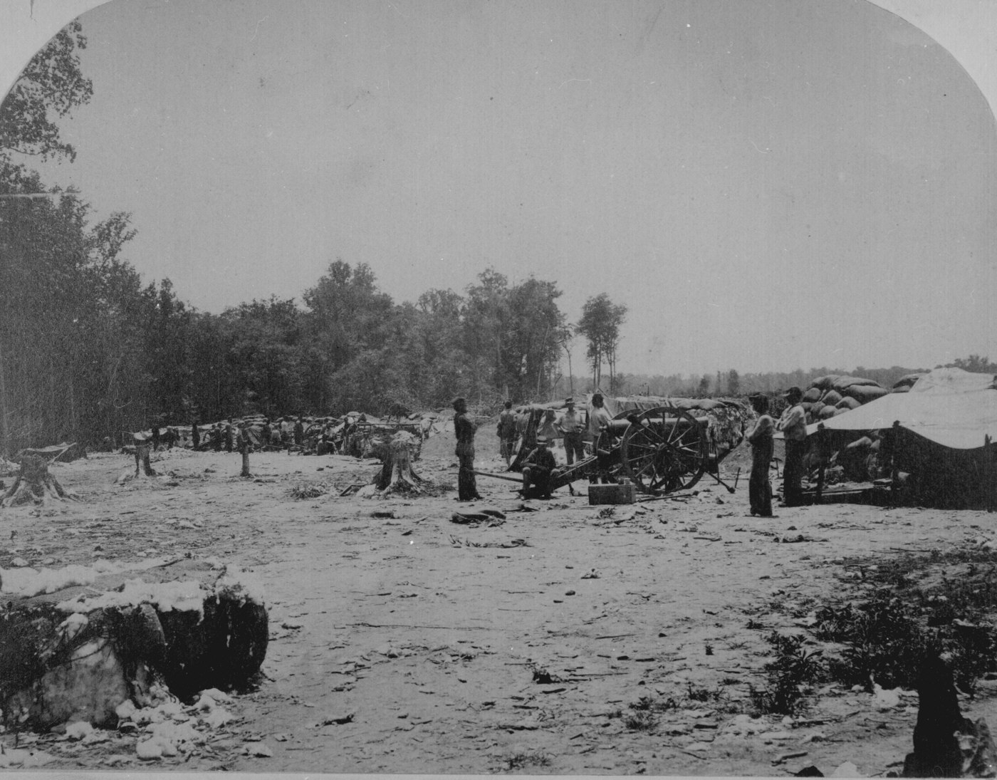 59. Confederate "Quaker" guns-logs mounted to deceive Union forces-in the fortifications at Centreville, Va., March 1862. Photographed by George N. Barnard and James F. Gibson. 165-SB-6.