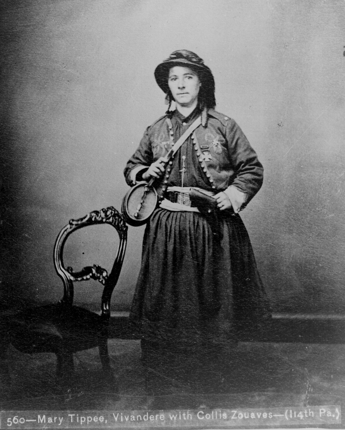 197. Tippee, Mary, sutler with Collis Zouaves (114th Pennsylvania); full-length, standing. 79-T-2148.